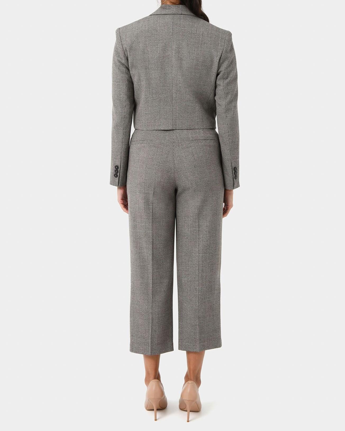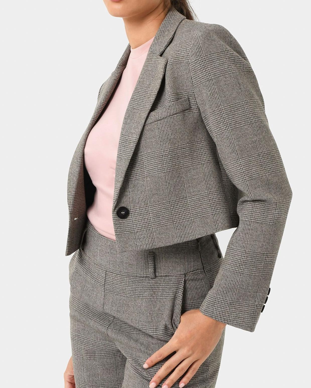 A modern take on classic tailoring, the Checked Crop Blazer features a structured fit, chic cropped length, and sharp notched lapel. With a single-button closure, buttoned cuffs, and a faux breast pocket, it’s perfect for work or casual styling, pair with trousers or skirt for a sleek look or denim for an effortless chic, laid-back vibe.