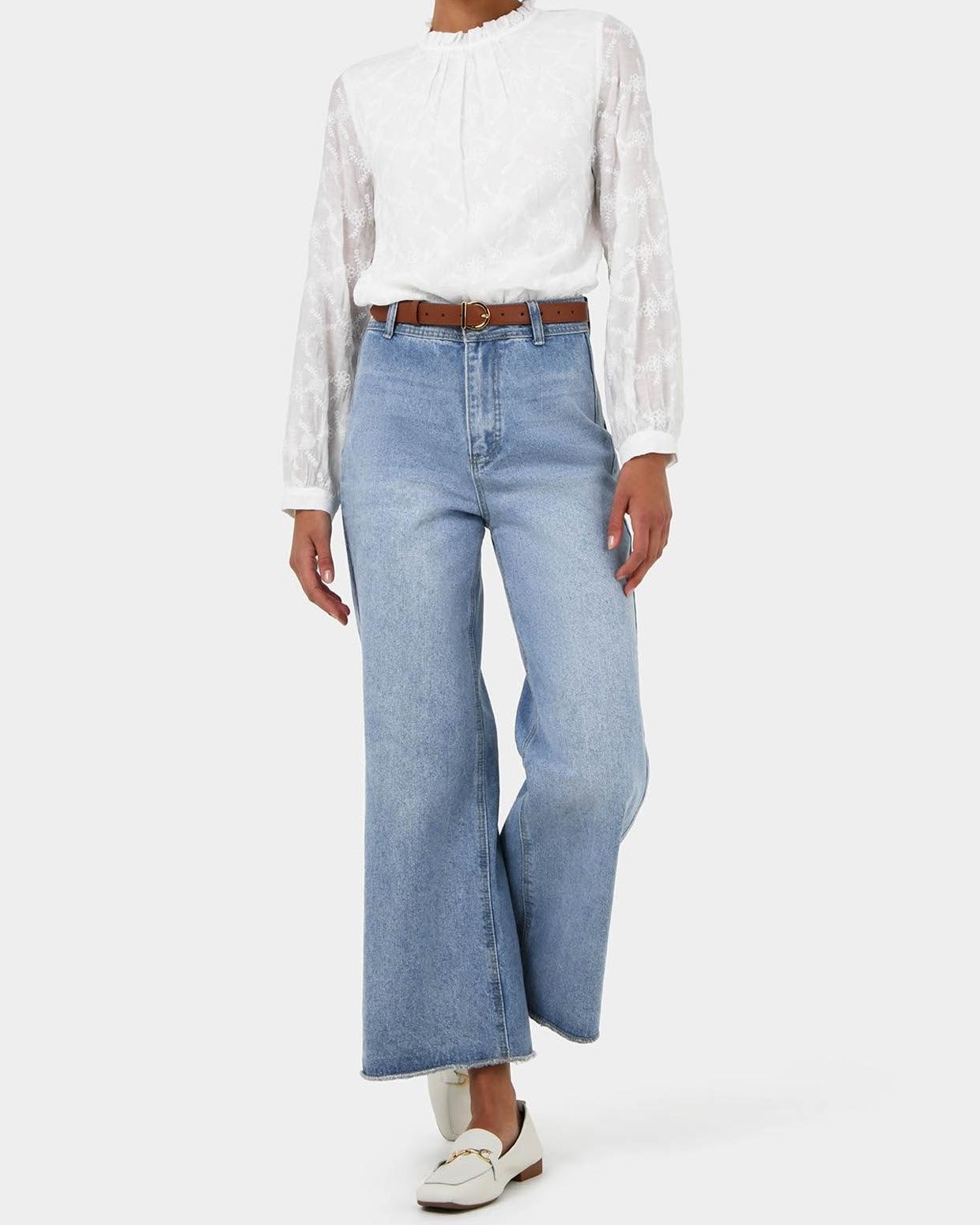 The Wide Leg Jeans are ideal for any occasion, effortlessly transitioning from casual to dressy. Whether paired with a crisp blouse for a polished look or a laid-back tee for a relaxed vibe, these jeans offer versatile styling options.