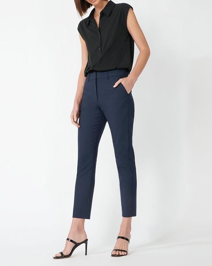 The High-Waist Trousers are the staple pants you need now for your workwear wardrobe. Simplify your weekday office dressing with these classic high-rise trousers. These easy-to-wear utility trousers are crafted with a flattering high-rise, fitted silhouette with functional front pockets and a comfortable slight stretch feel. Wear a collared blouse tucked in for a polished office look.