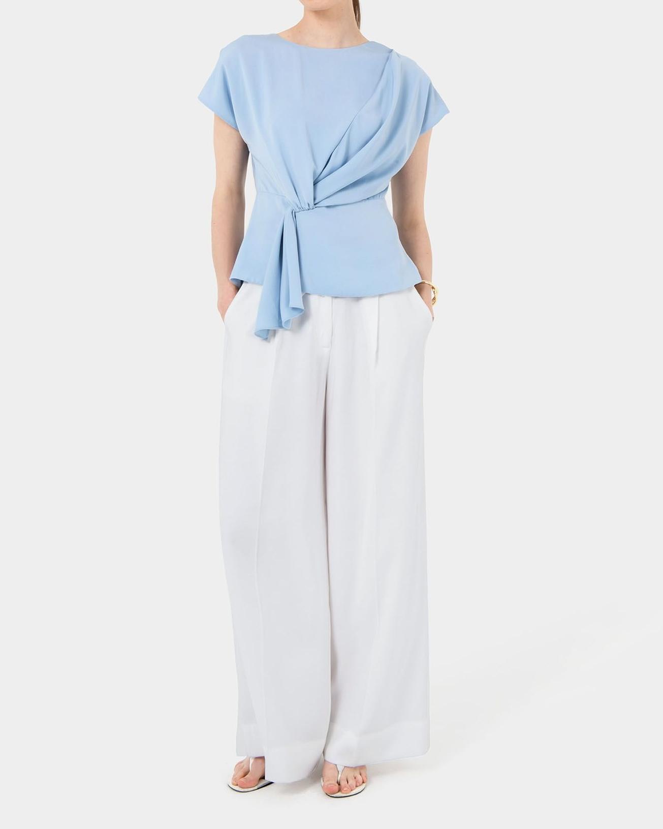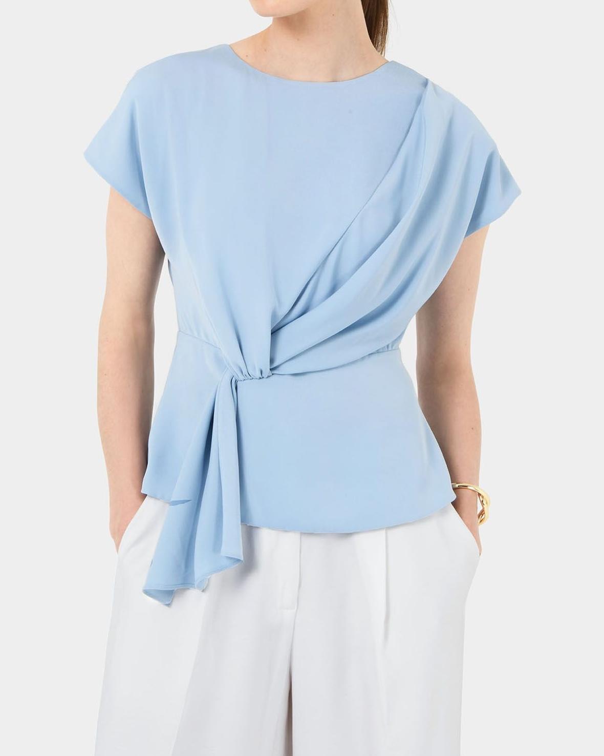 The Draped Top is a timeless piece that will never go out of style. The round neckline and gathering detail adds a touch of elegance and can be styled in various ways to suit your preference. Great as a statement work top and laid back events, pair it with tailored pants for a chic office look.