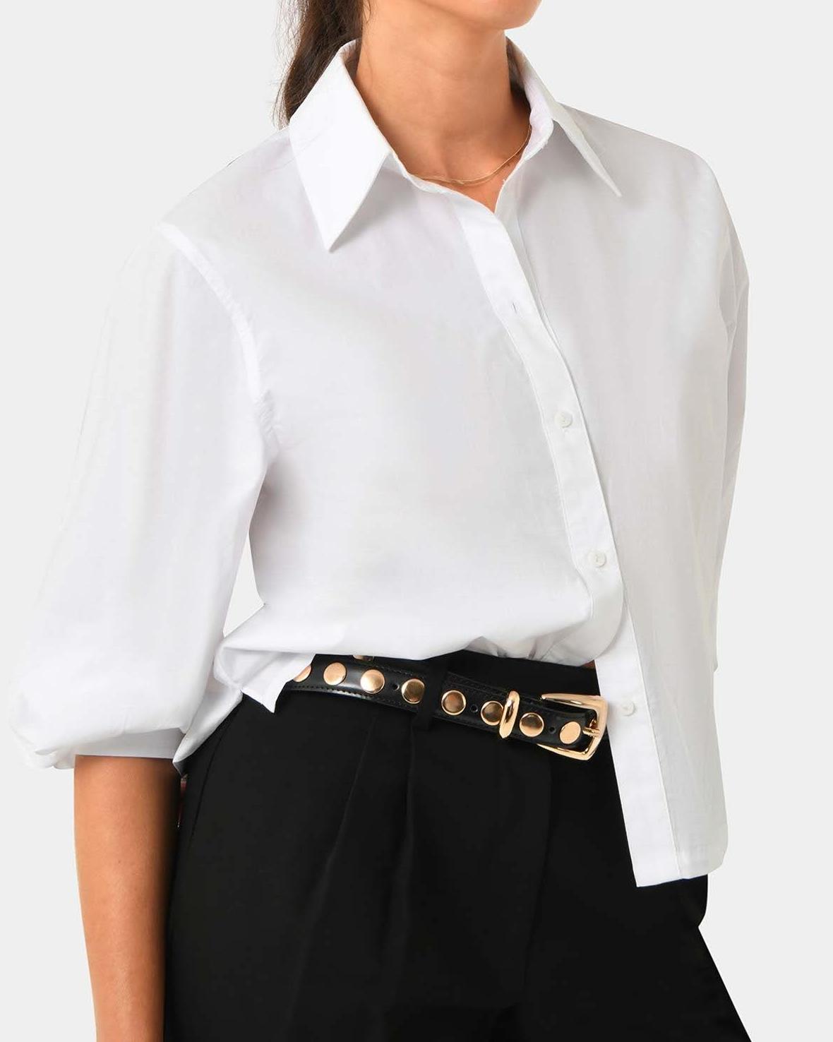 The Puff Sleeve Shirt is your modern wardrobe essential. Designed with stylish long puff sleeves, it features buttoned cuffs and a classic button-down front for a timeless appeal. Tuck it into high-waisted shorts, skirts or pants for a more polished, feminine silhouette.