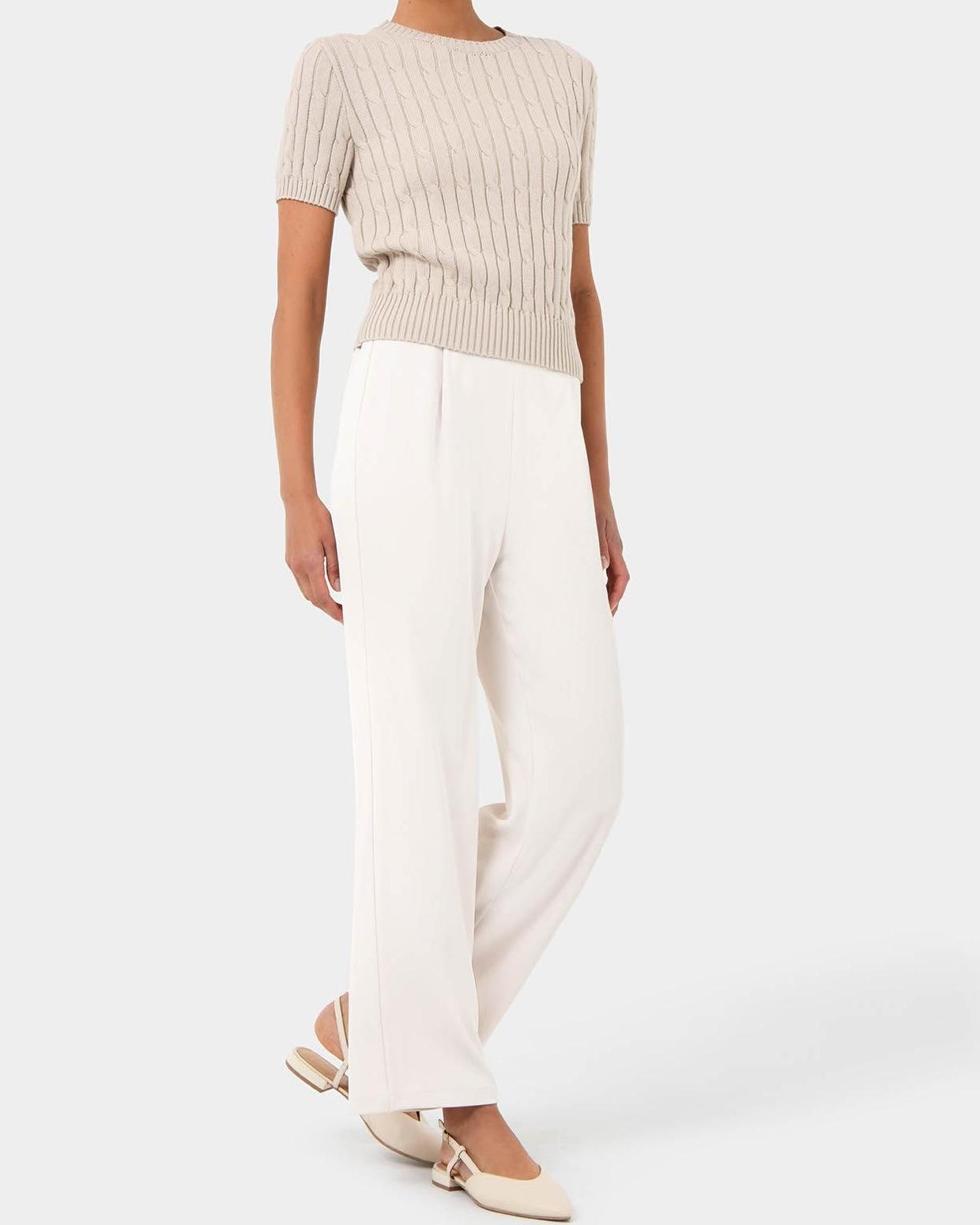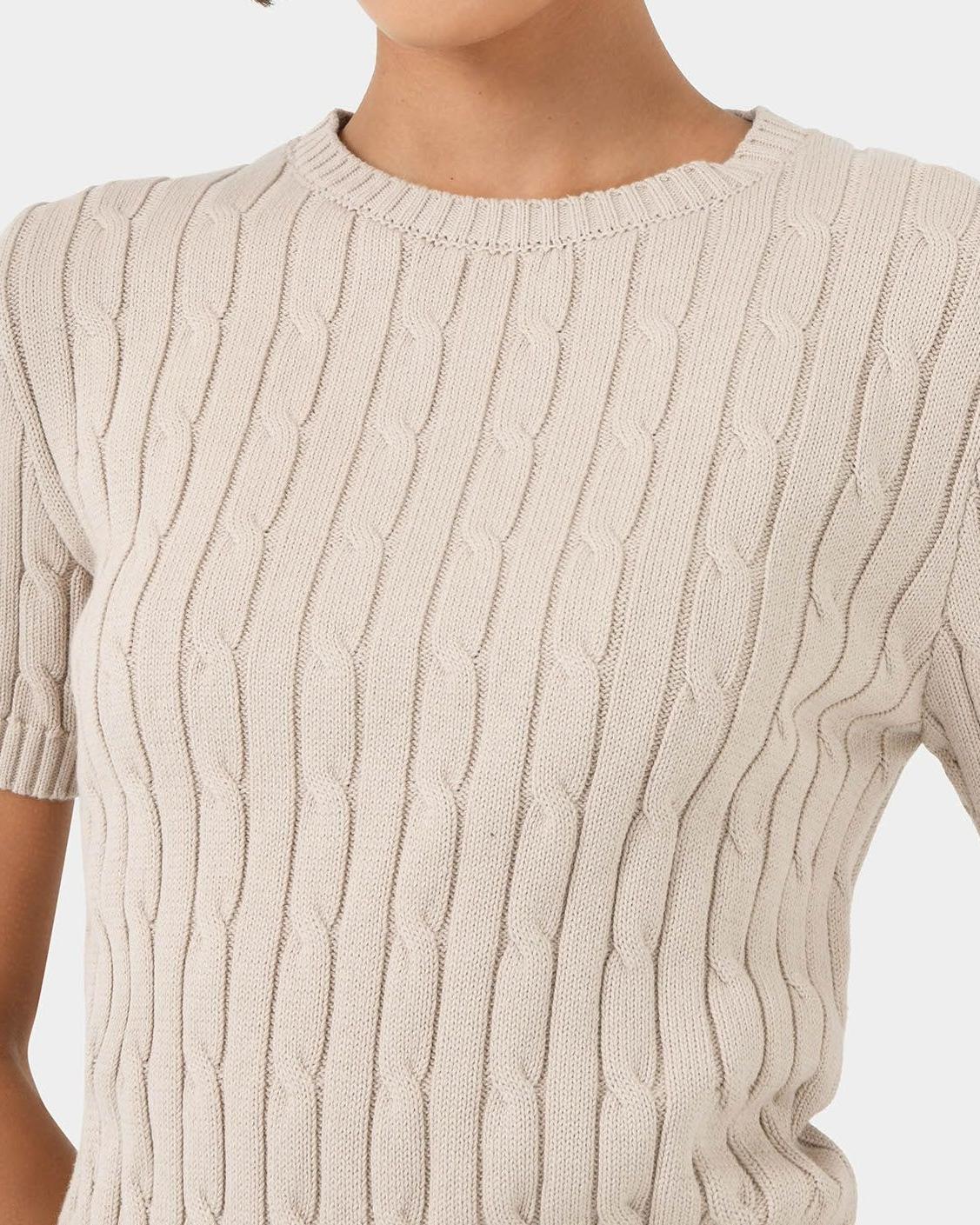 Discover effortless style with our Short Sleeve Cable Knit. Featuring a classic cable pattern in a lightweight knit, this top combine simplicity with a touch of sophistication. Perfect for layering or wearing solo, its versatile design and soft fabric make it a must-have for any wardrobe.