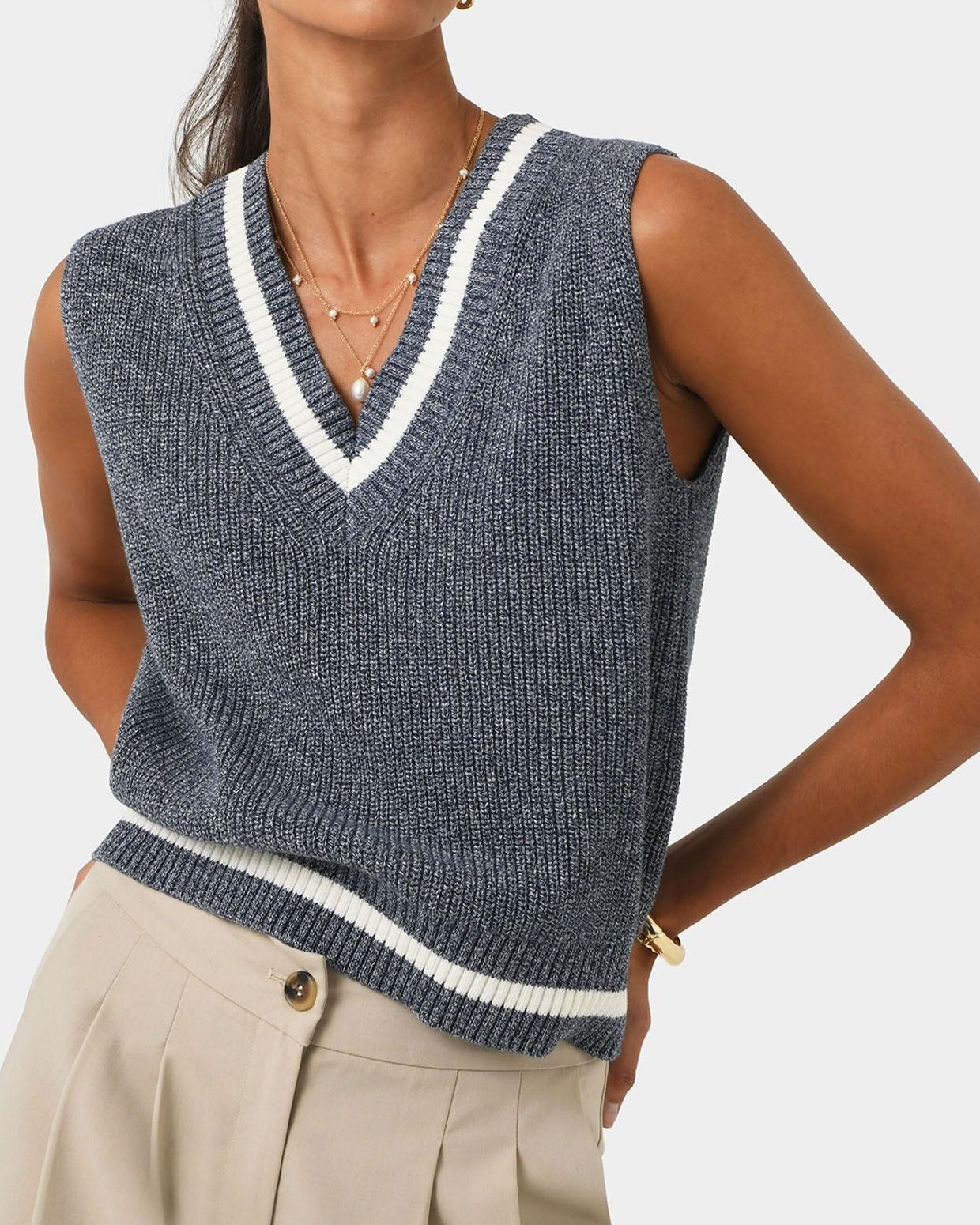 Meet your new go-to wardrobe essential. The V-Neck Knit is stylish, comfortable, and timeless. With a classic V-neckline and sleeveless design make it versatile for dressing up or down. The contrasting white trim adds a subtle pop of detail, making it an easy match for tailored trousers, flowing skirts, or relaxed denim.