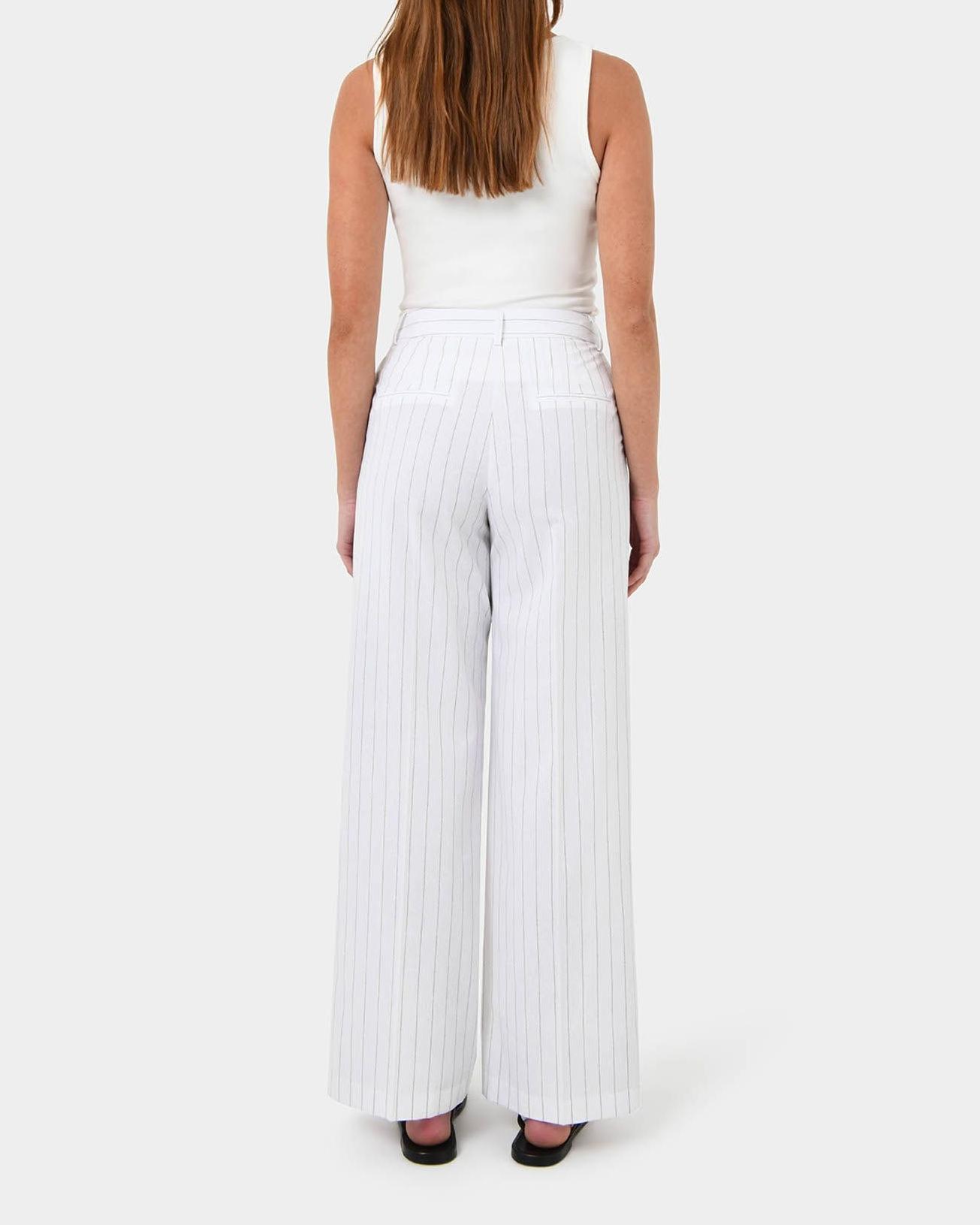 Sleek and structured, the Stripe Cotton Blend Pants offer both style and comfort. The breathable cotton blend and neutral stripes make it an easy player in your new season wardrobe.