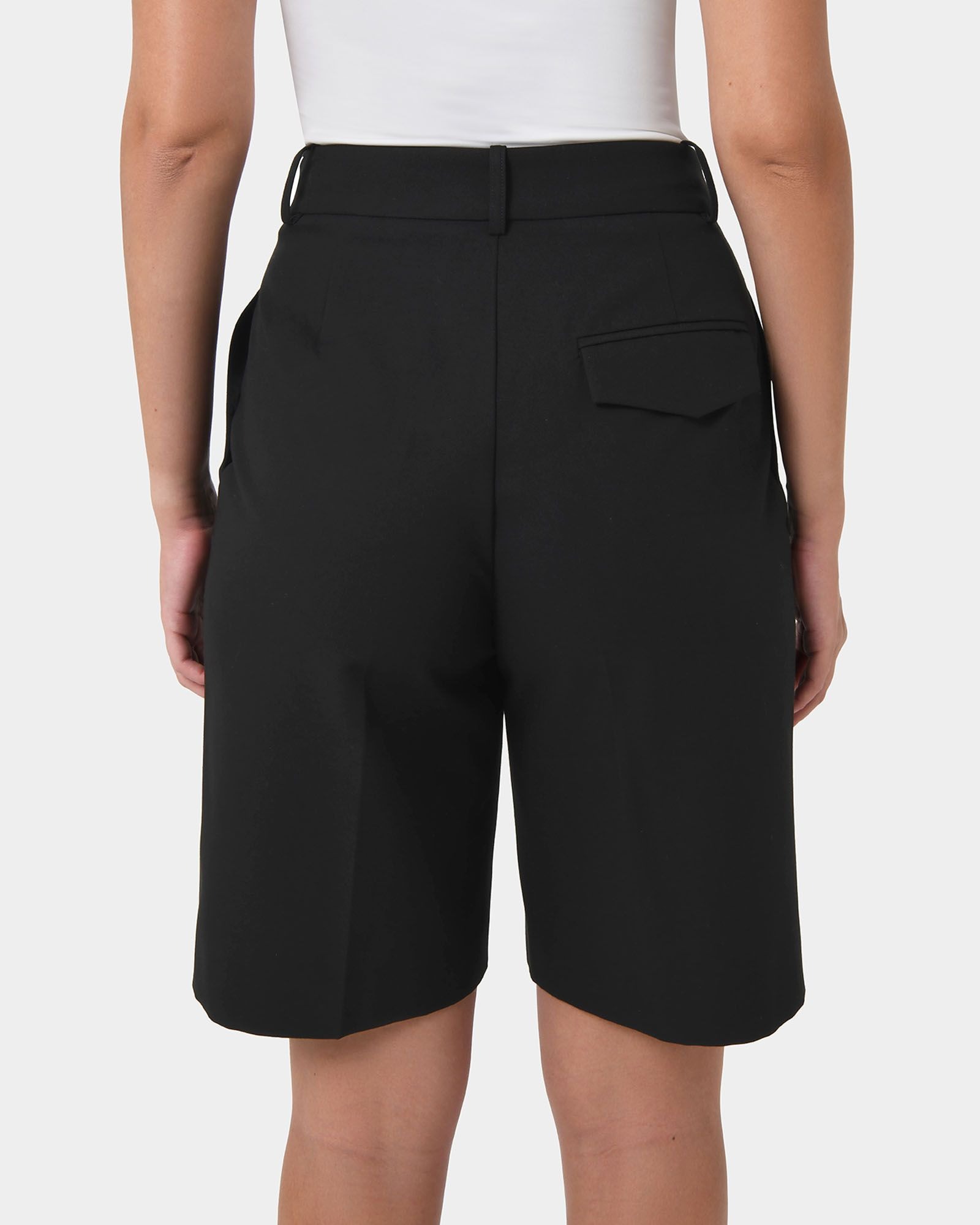 The Tailored Short offers a sleek, flattering fit with extended tabs and double pleats for a refined, structured look. The mid-rise waist and relaxed leg opening ensure comfort all day, while side pockets and a secure front closure add functionality. Complete the outfit with a blazer for a sharp, office-ready vibe, or keep it relaxed with a tee for a laid-back weekend feel.